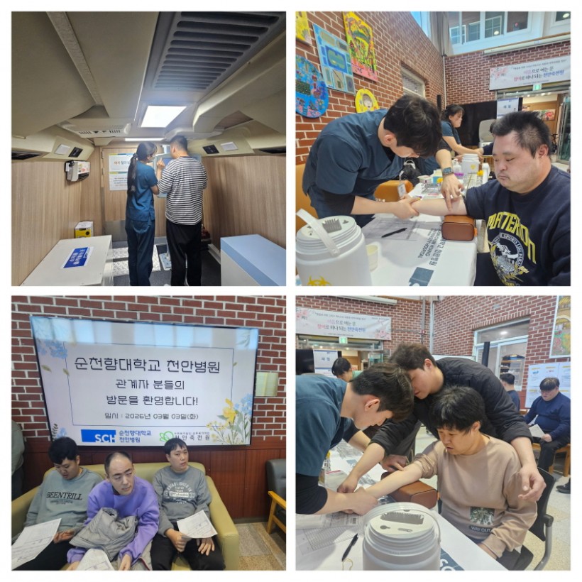 앞으로도 우리 센터는 이용인들이 건강하고 안전한 일상을 이어갈 수 있도록 세심하게 살피고 지원해 나가겠습니다. 바쁜 일정 속에서도 방문해 따뜻한 마음으로 검진을 진행해 주신 순천향대학교 천안병원 건강검진팀에 깊이 감사드립니다.